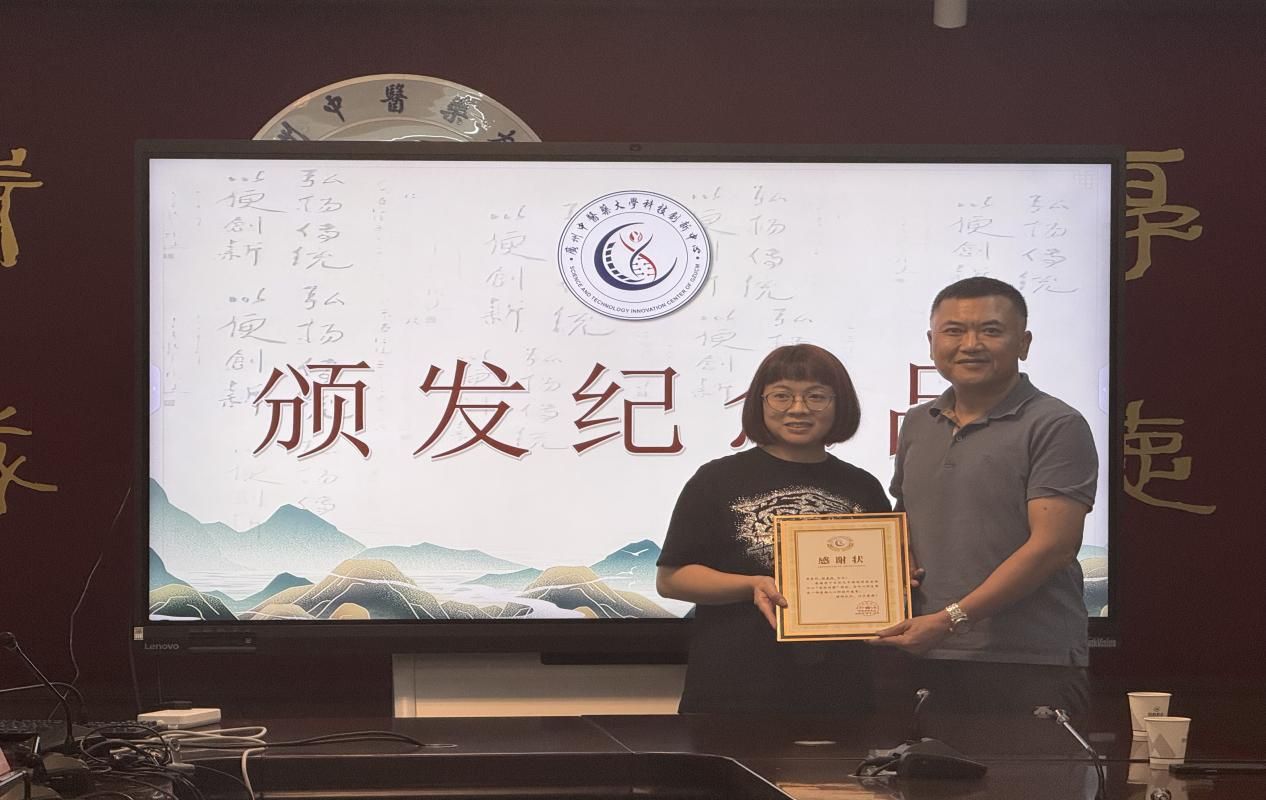 在活动的最后环节,科技创新中心党委副书记何军代表中心向郑素玲女士致以诚挚谢意,并现场为她颁发了感谢状及纪念品。这一仪式不仅表达了中心对郑女士的衷心感谢,也象征着“杏林传薪”讲坛始终致力于搭建学术与实践、校园与社会之间的桥梁。“杏林传薪”系列讲坛将继续邀请各界精英人士传道授业,为培养具有家国情怀、全球视野与创新精神的卓越人才贡献力量。